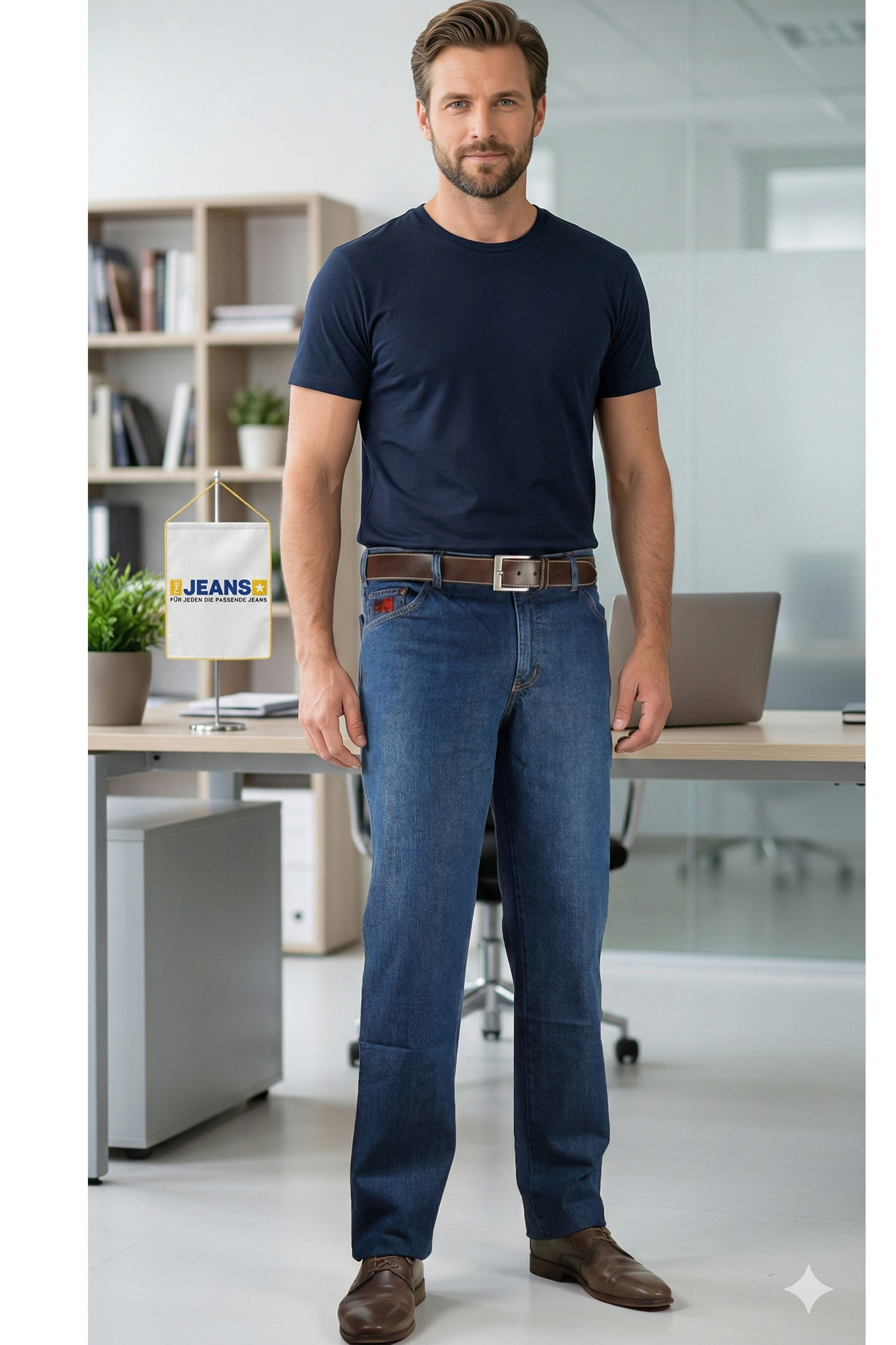Die Herrenjeans 302-Classic wurde speziell für Männer in Überlänge und Übergröße konzipiert. Mit ihrer normalen Bundhöhe und dem geraden Beinverlauf sorgt sie für eine vorteilhafte Passform. Dank des hochwertigen Ringdenims aus 100% Baumwolle bietet sie gleichzeitig hohen Tragekomfort.