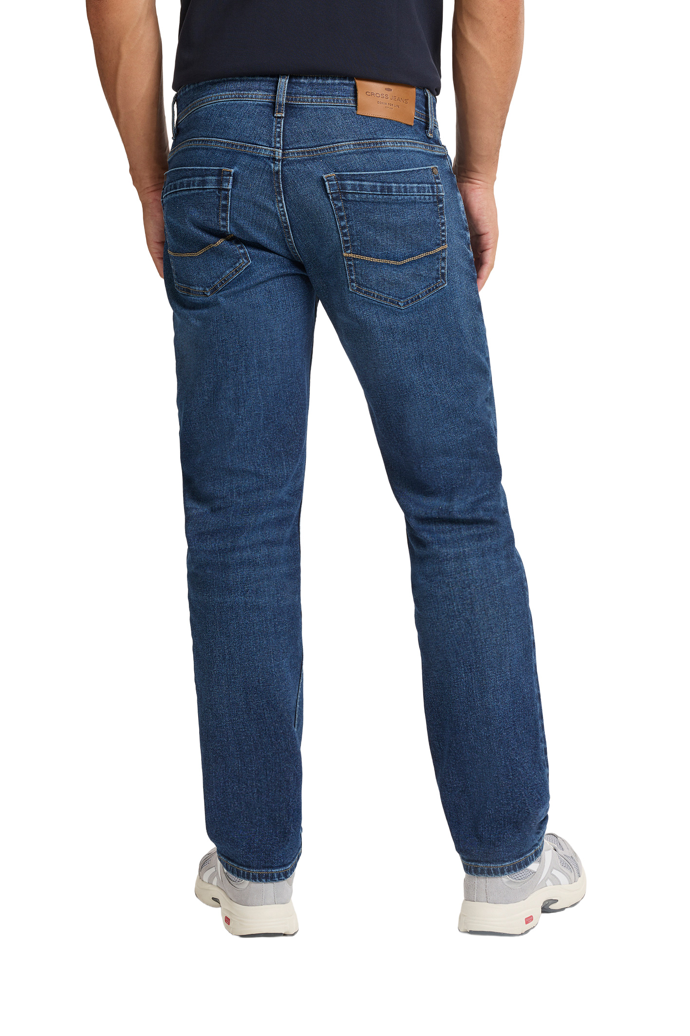 Schön entspannt bleiben! Die CROSS JEANS ANTONIO bietet mit ihrem Relaxed Fit, geradem Beinverlauf (Straight Leg) und dem angenehm stretchigen Baumwoll-Denim den perfekten Mix aus Komfort und Stil. Die Regular Waist sorgt für eine bequeme Passform, während die schwere Denimware mit Buffies dem Look eine maskuline Note verleiht.