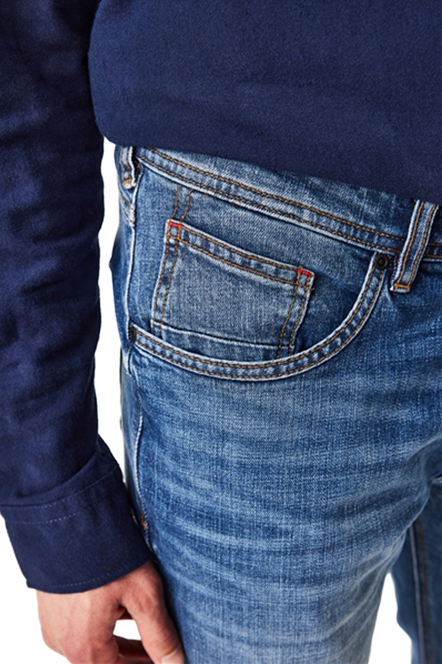Die Jeans ist aus hochwertigem Stretchdenim (99 % Baumwolle, 1 % Elasthan) gefertigt und bietet dadurch einen angenehmen Tragekomfort mit optimaler Bewegungsfreiheit. Mit ihrem Regular Fit und der Medium Rise Leibhöhe sitzt sie bequem und passt zu jedem Anlass. Besonders praktisch: Die eingefassten Fronttaschen unterstreichen die hochwertige Verarbeitung.