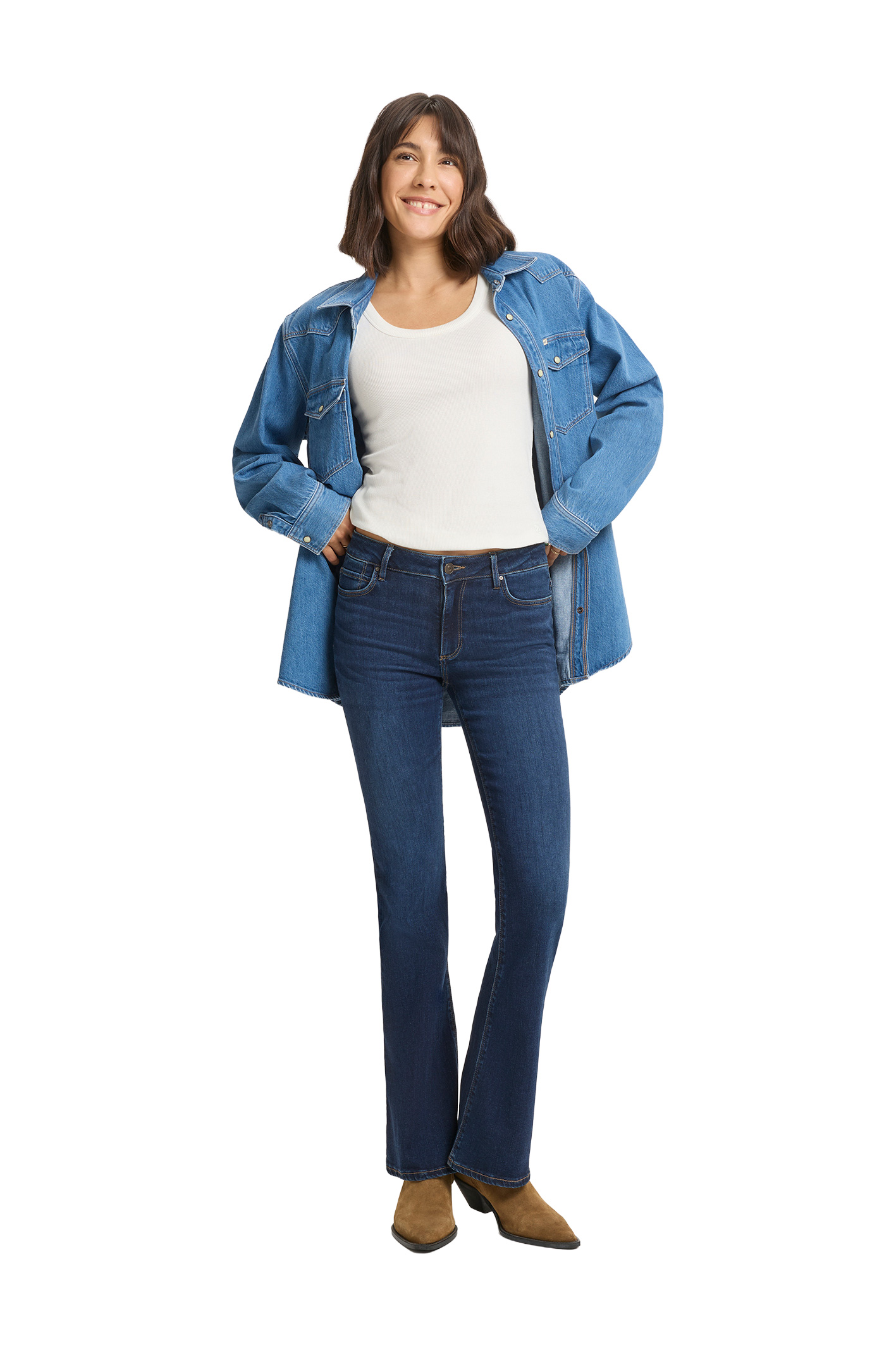 Die Slim Fit Passform sorgt dafür, dass die Jeans deine Figur vorteilhaft betont. Sie ist körpernah geschnitten, ohne einzuengen, und betont die natürliche Silhouette auf elegante Weise. Gleichzeitig sorgt der Flare Leg dafür, dass die Beine schön zur Geltung kommen und die Proportionen stimmig wirken. Diese Kombination aus Slim Fit und ausgestelltem Bein ist eine der beliebtesten Passformen bei modebewussten Frauen und verleiht jedem Outfit sofort eine moderne Note.