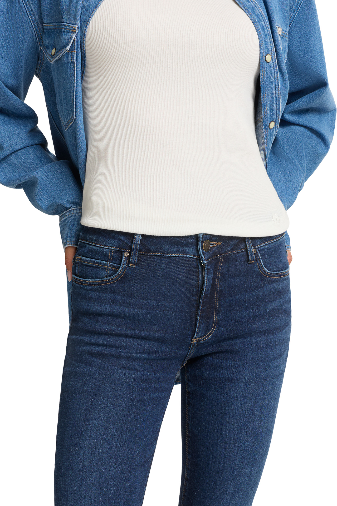 Die zeitlose Deep Blue Waschung ist ein weiteres Highlight. Sie lässt sich leicht kombinieren, wirkt gepflegt und stylisch zugleich. Die subtilen Buffies verleihen der Jeans den perfekten Used-Look, der aktuell total angesagt ist. Dabei bleibt die Hose dennoch elegant genug, um sie zu klassischen Outfits zu kombinieren. Du kannst die FAYE mit Boots, Stiefeletten oder Sneakern tragen – sie passt einfach immer.