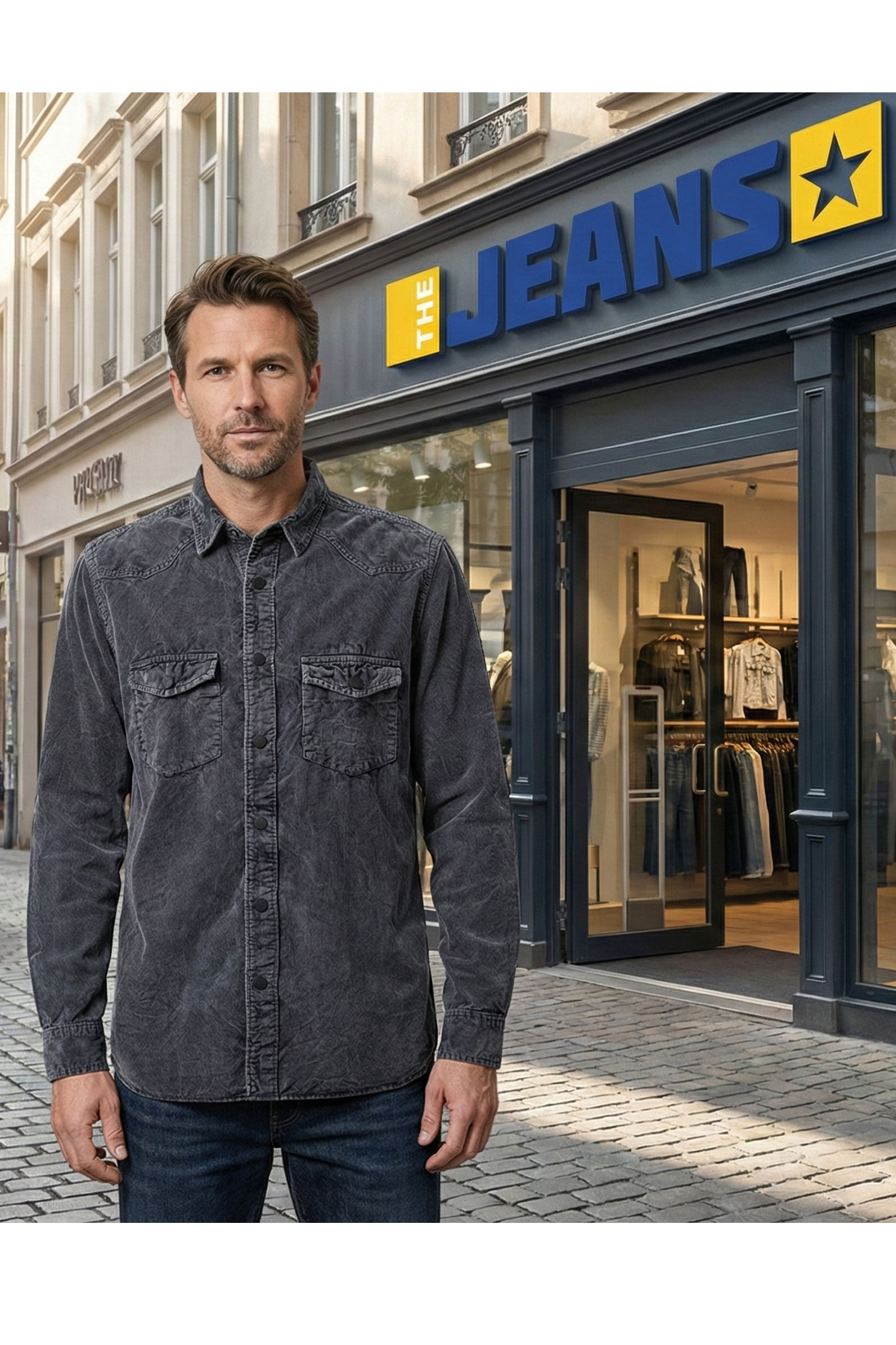 Ein echtes Lieblingsstück: Das Cord-Westernhemd in Night Sky überzeugt mit klassischem Schnitt, starken Details und super Kombinationsmöglichkeiten – besonders auch für Männer, die Übergrößen suchen.
