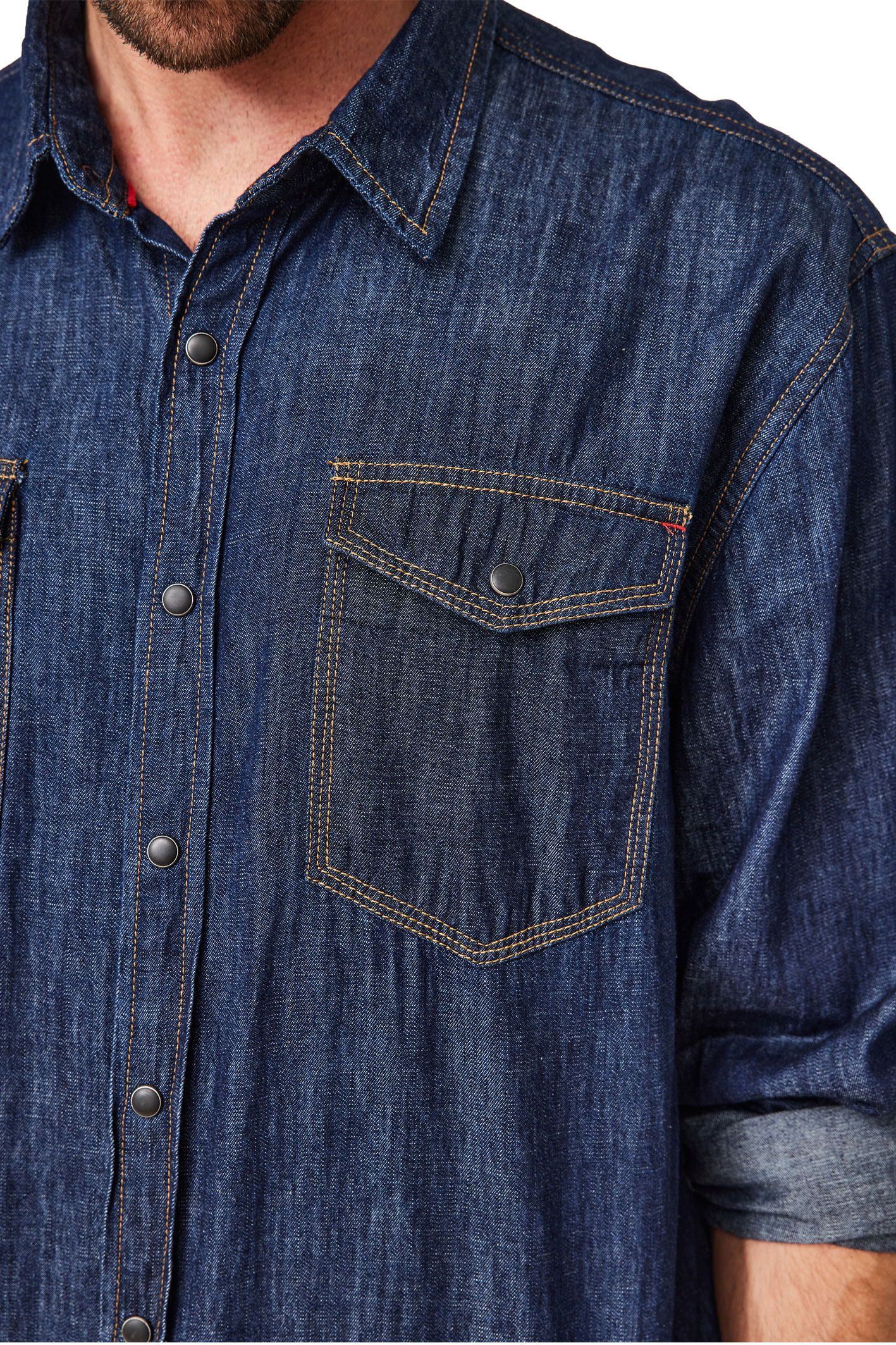 Ein kerniges, vielseitiges Jeanshemd aus 100 % Baumwolle, das solo oder lässig offen getragen werden kann.
