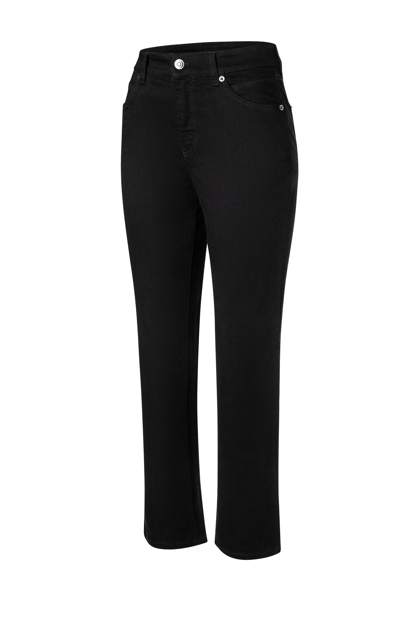 Eine zeitlose, elegante Damenjeans, die durch ihre bequeme Passform, hochwertige Stretchqualität und die komplett schwarze Optik zu einem echten Allrounder im Kleiderschrank wird.