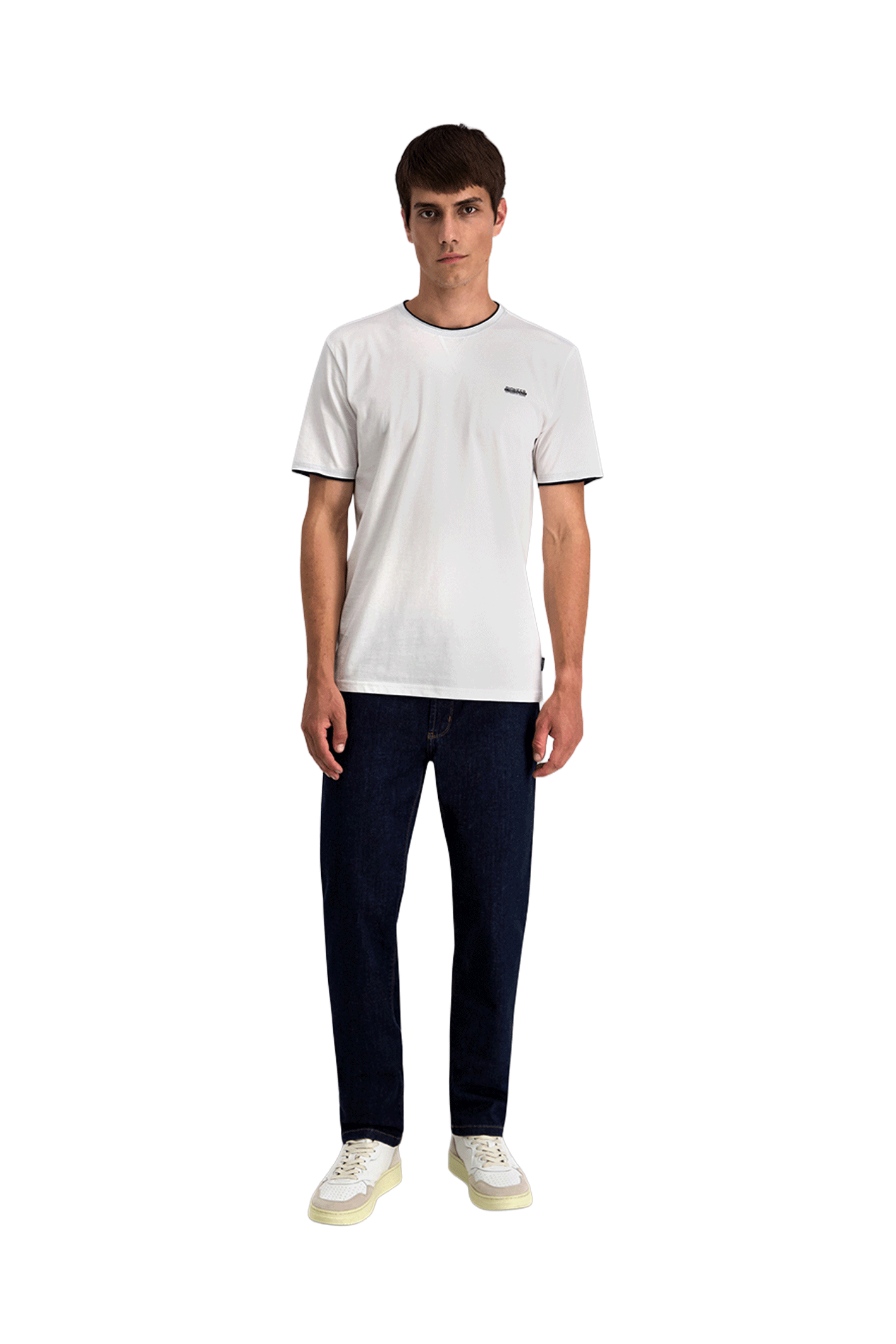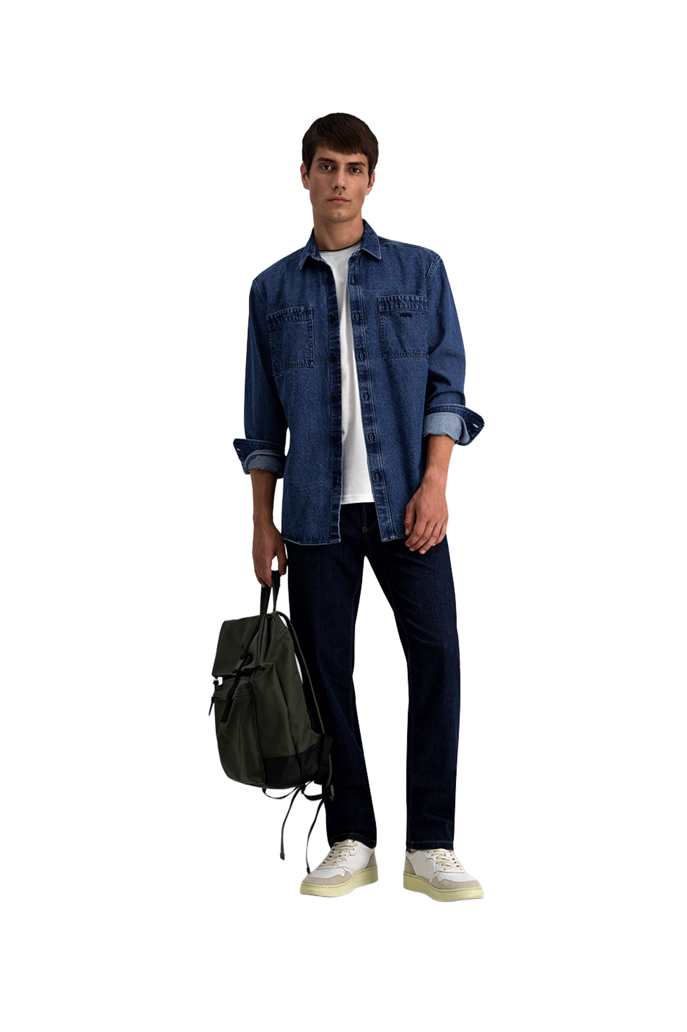 Die dunkelblaue Waschung lässt sich gut mit hellen Hemden oder Pullovern kombinieren – etwa weiß, hellgrau oder oliv. Für einen legeren Look mit Sneakern oder für Smart-Casual mit Leder- oder Chelseaboots.