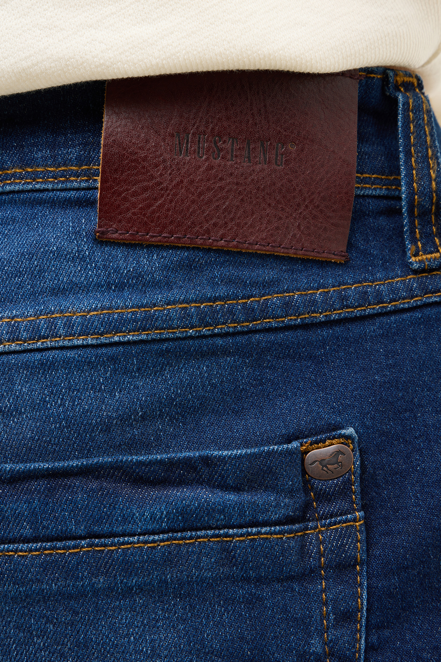 • Modische Gesäßtaschen & Echt Lederlabel: Große Gesäßtaschen sorgen für eine modische Optik und Funktionalität, während das Echtlederlabel mit Mustang-Prägung einen hochwertigen Akzent setzt.
