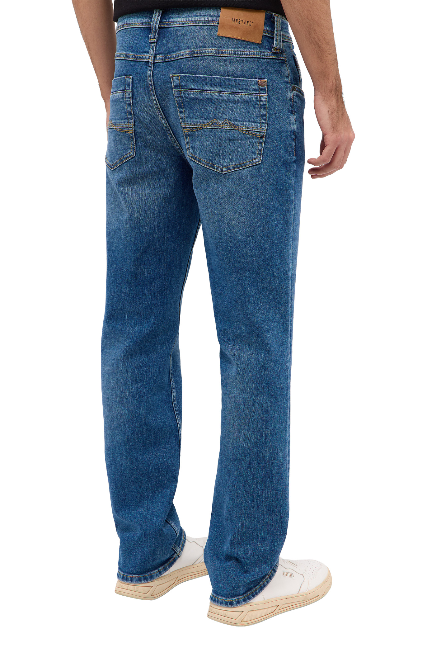 Die Mustang Herrenjeans im Modell WASHINGTON STRAIGHT ist eine stilvolle und detailreiche Jeans, die durch ihre hochwertige Verarbeitung und nachhaltige Materialzusammensetzung überzeugt. Hier sind die wichtigsten Merkmale: